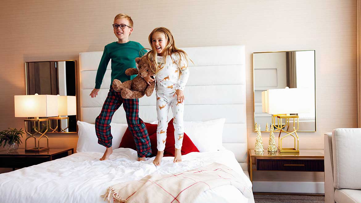 Stay in a room decked out with cozy holiday décor and holiday magic. Save up to 20% + enjoy a $100 hotel credit at select destinations.